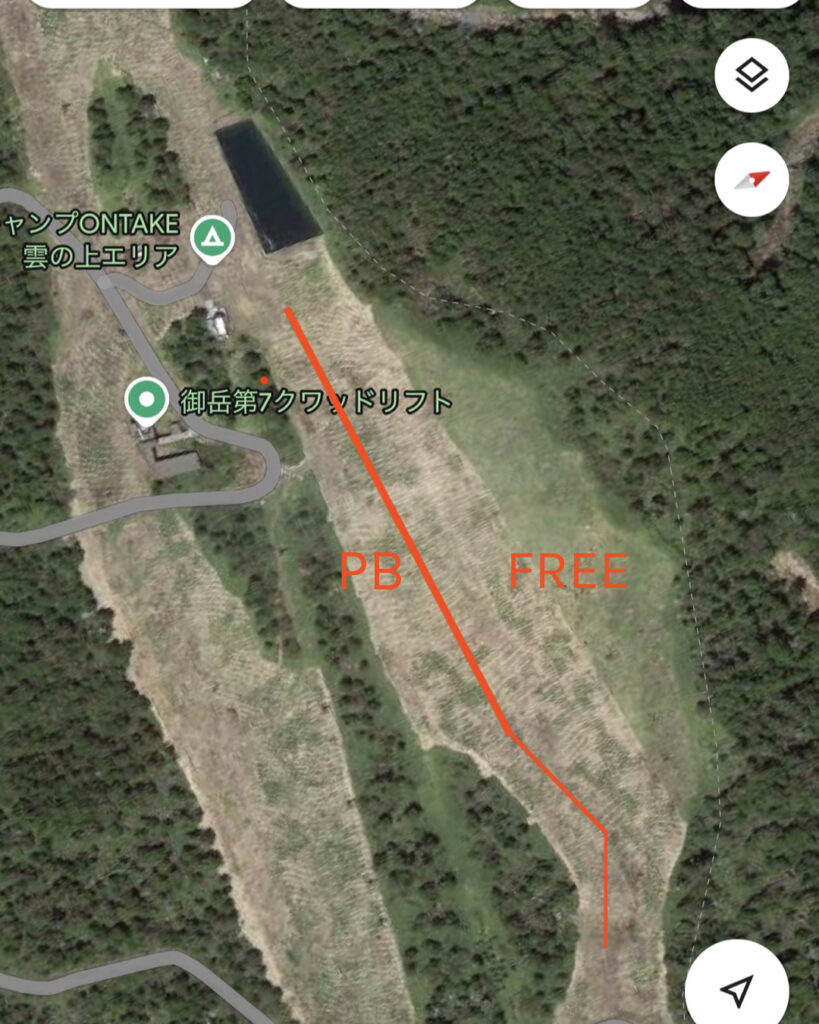 今まで下から見てゲレンデ右側をポールバーンエリアとして規制しておりましたが、地形を考慮し、左側をポールバーンエリアとしました。