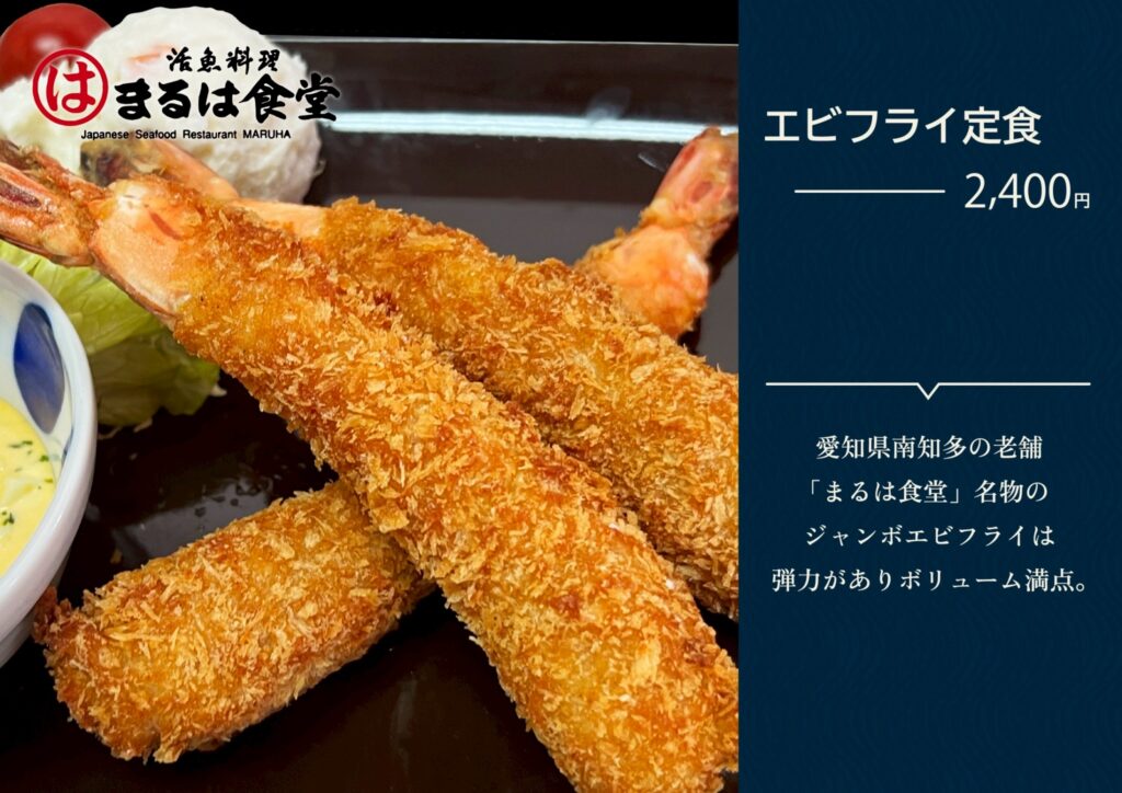 ・王滝村の友好都市である南知多からは”あの有名な”「まるは食堂のエビフライ」仕入れに妥協しない自慢の逸品です。