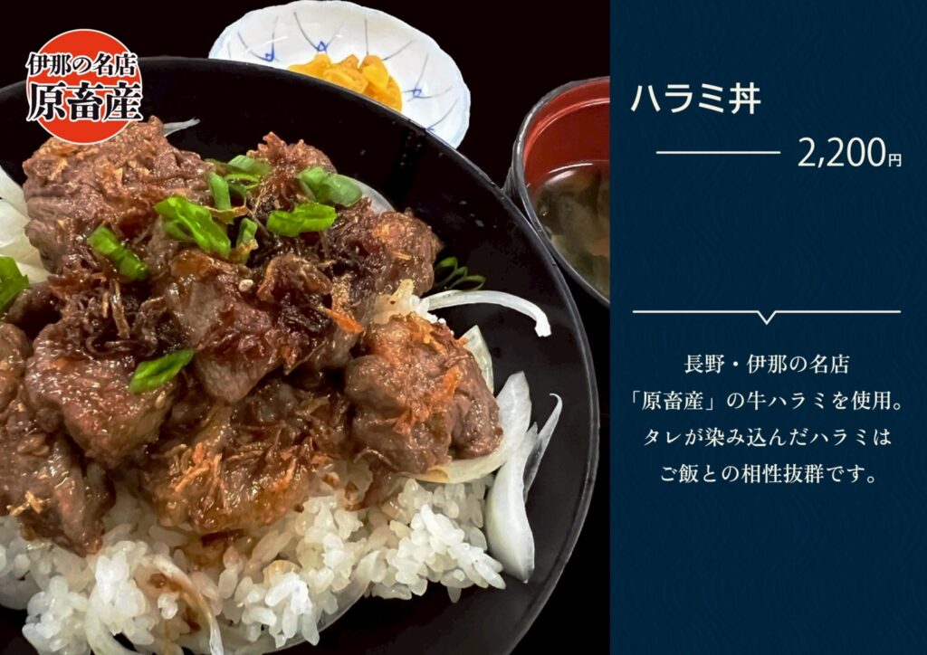 ・伊那市からは精肉店原畜産のハラミを仕入れて信州牛のハラミ丼